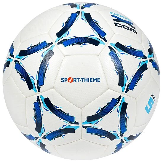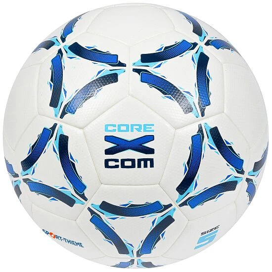Der Sport-Thieme Fußball „CoreX Com“ überzeugt besonders durch seine Hybrid-Technik. Hier werden die Klebe- und Nahttechnik miteinander kombiniert. Den Ball zeichnen seine robuste und dicke Außenhaut aus. Die einzelnen Panels sind zusätzlich verklebt und reduzieren die Wasseraufnahme. Auch die Ballblase lässt sich nur bis zu einer bestimmten Größe aufpumpen, sodass eine Überspannung ausgeschlossen ist.